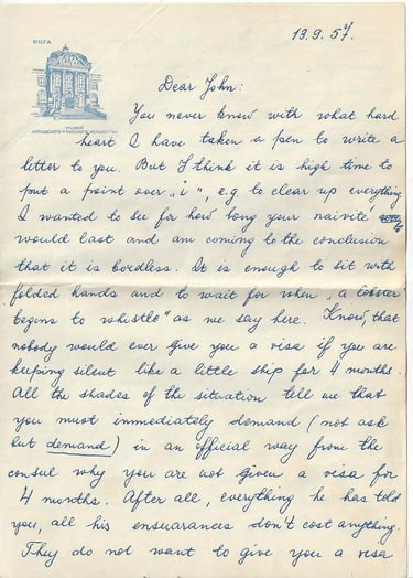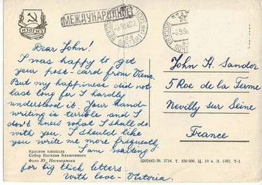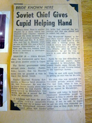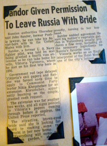 Dana and her family have preserved the remarkable artifacts documenting John and Viktoria's romance and life together. From photographs of John's military service to Viktoria's romantic letters to press clippings about their marriage and escape from Moscow, these treasures show the true story behind Exit Visa #1.